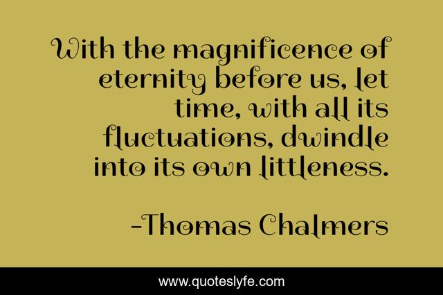 This page presents the quote "With the magnificence of eternity before us, let time, with all its fluctuations, dwindle into its own littleness.". Author of this quote is Thomas Chalmers. This quote is about eternity, relativity, time,.