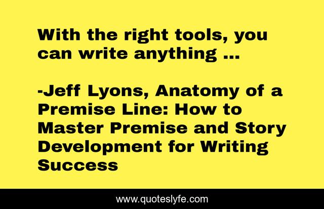 "Jeff Lyons, Anatomy of a Premise Line: How to Master Premise and Story Development for Writing Success Quotes." Quoteslyfe.com, 2025. Fri. 05 Dec. 2025. <https://www.quoteslyfe.com/quote/With-the-right-tools-you-can-write-187189>.