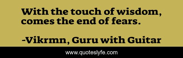 This page presents the quote "With the touch of wisdom, comes the end of fears.". Author of this quote is Vikrmn, Guru with Guitar. This quote is about gwg, vikram, positive, motivational, confidence, ca-vikram-verma, guru-with-guitar, vikrmn, optimistic,.