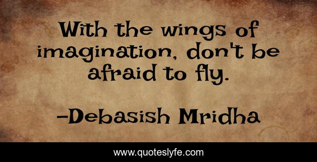 This page presents the quote "With the wings of imagination, don't be afraid to fly.". Author of this quote is Debasish Mridha. This quote is about fly-with-imagination, quotes, philosophy, debasish-mridha, imagination, debasish-mridha-md, inspirational, don-t-be-afraid, enthusiasm,.