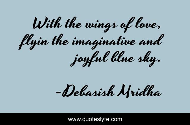 This page presents the quote "With the wings of love, flyin the imaginative and joyful blue sky.". Author of this quote is Debasish Mridha. This quote is about life, love, knowledge, inspirational, intelligence, philosophy, wisdom, quotes, affection,.