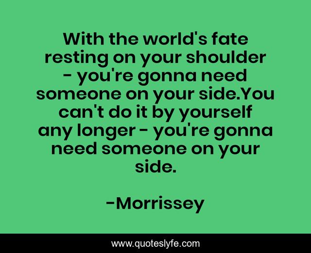 This page presents the quote "With the world's fate resting on your shoulder - you're gonna need someone on your side.You can't do it by yourself any longer - you're gonna need someone on your side.". Author of this quote is Morrissey. This quote is about friendship, life, humor, lyrics, music,.