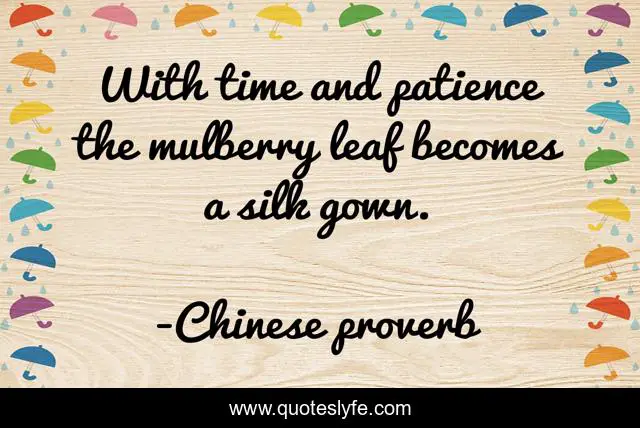This page presents the quote "With time and patience the mulberry leaf becomes a silk gown.". Author of this quote is Chinese proverb. .