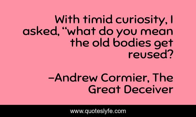 "Andrew Cormier, The Great Deceiver Quotes." Quoteslyfe.com, 2025. Mon. 15 Dec. 2025. <https://www.quoteslyfe.com/quote/With-timid-curiosity-I-asked-what-do-231973>.