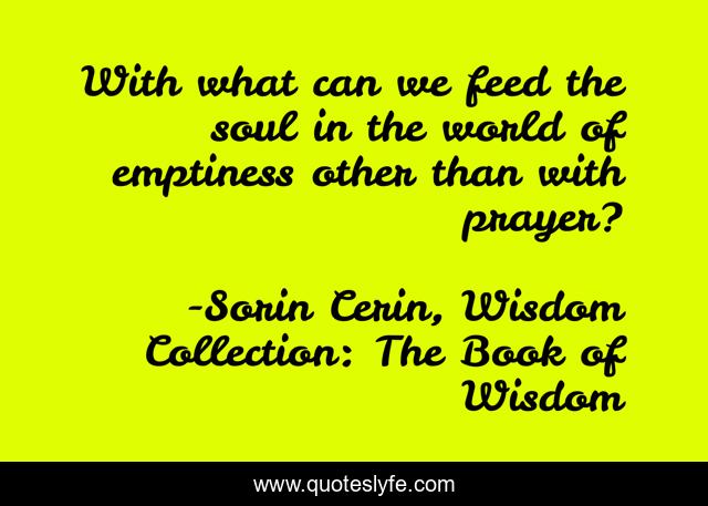 This page presents the quote "With what can we feed the soul in the world of emptiness other than with prayer?". Author of this quote is Sorin Cerin, Wisdom Collection: The Book of Wisdom. This quote is about world, dreamers, love, affection,.
