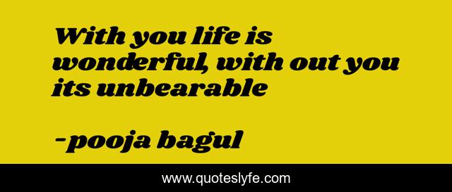 This page presents the quote "With you life is wonderful, with out you its unbearable". Author of this quote is pooja bagul. This quote is about relationships, love, soul, affection,.