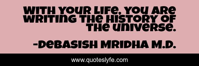 This page presents the quote "With your life, you are writing the history of the universe.". Author of this quote is Debasish Mridha M.D.. This quote is about life, universe, philosophy, debasish-mridha, quotes, inspirational, enthusiasm, debasish-mridha-m-d,.