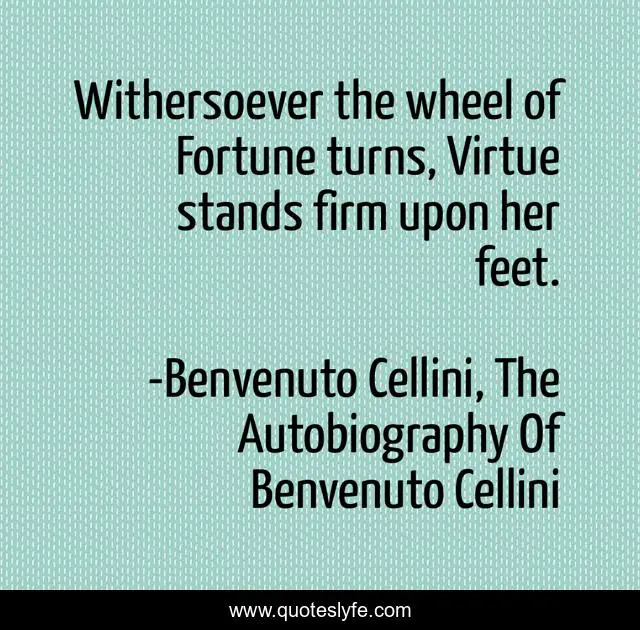 This page presents the quote "Withersoever the wheel of Fortune turns, Virtue stands firm upon her feet.". Author of this quote is Benvenuto Cellini, The Autobiography Of Benvenuto Cellini. This quote is about fortune, virtue, virtues,.