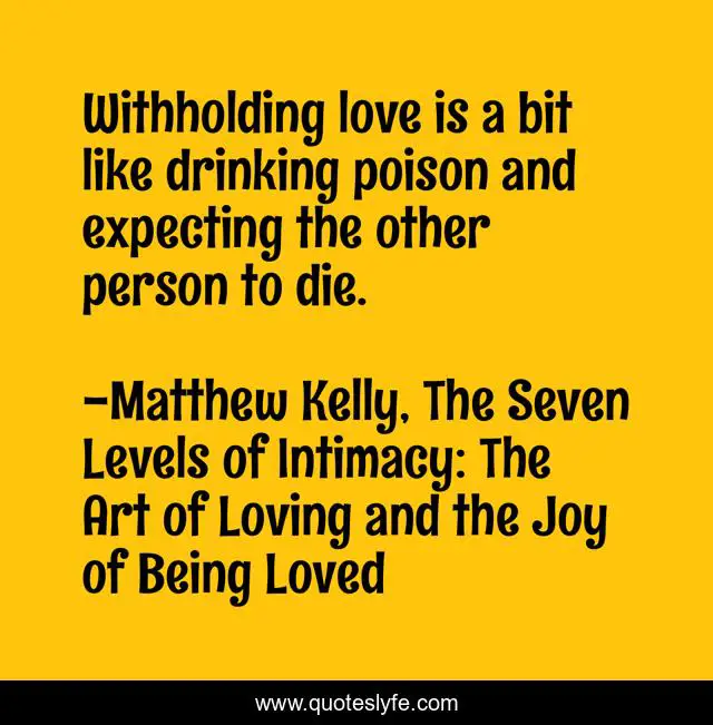 "Matthew Kelly, The Seven Levels of Intimacy: The Art of Loving and the Joy of Being Loved Quotes." Quoteslyfe.com, 2025. Sat. 06 Dec. 2025. <https://www.quoteslyfe.com/quote/Withholding-love-is-a-bit-like-drinking-163678>.