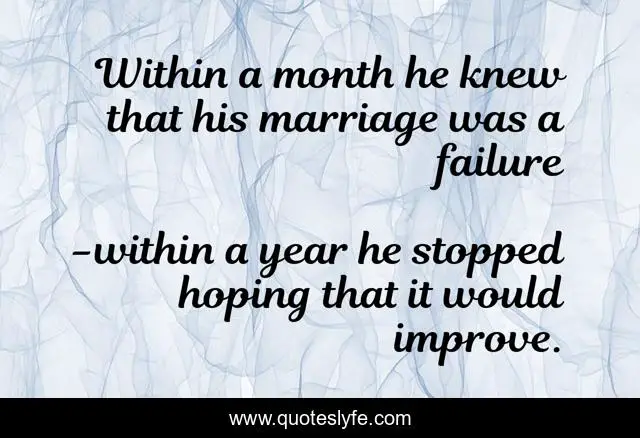 This page presents the quote "Within a month he knew that his marriage was a failure". Author of this quote is within a year he stopped hoping that it would improve.. This quote is about stoner, john williams,.