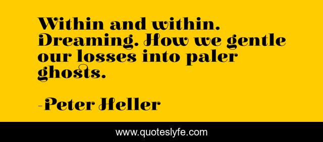 This page presents the quote "Within and within. Dreaming. How we gentle our losses into paler ghosts.". Author of this quote is Peter Heller. .