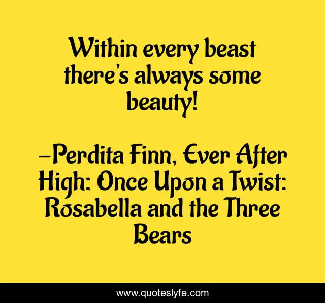 This page presents the quote "Within every beast there's always some beauty!". Author of this quote is Perdita Finn, Ever After High: Once Upon a Twist: Rosabella and the Three Bears. This quote is about beast, beauty,.