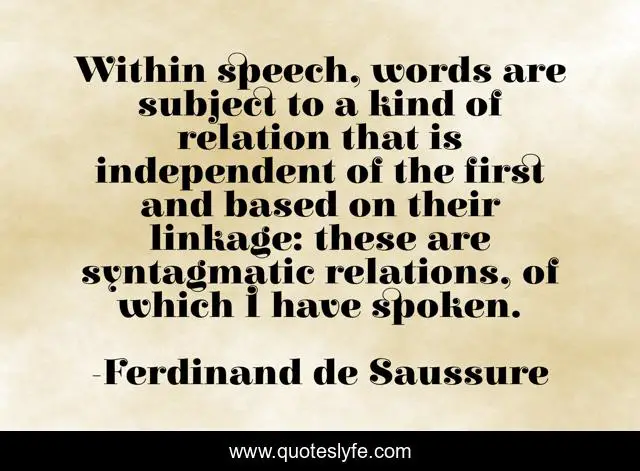 "Ferdinand de Saussure Quotes." Quoteslyfe.com, 2025. Mon. 08 Dec. 2025. <https://www.quoteslyfe.com/quote/Within-speech-words-are-subject-to-a-288307>.