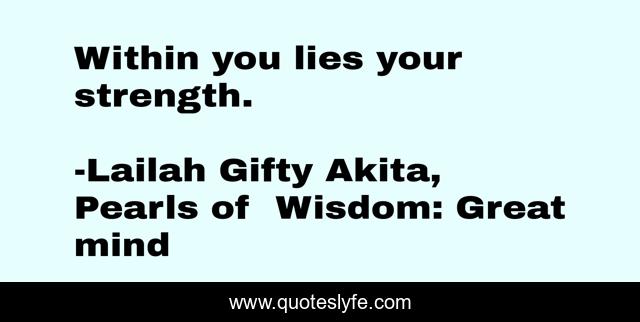 "Lailah Gifty Akita, Pearls of Wisdom: Great mind Quotes." Quoteslyfe.com, 2025. Tue. 09 Dec. 2025. <https://www.quoteslyfe.com/quote/Within-you-lies-your-strength-140455>.