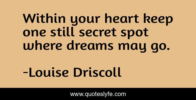 This page presents the quote "Within your heart keep one still secret spot where dreams may go.". Author of this quote is Louise Driscoll. .