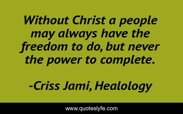 "Criss Jami, Healology Quotes." Quoteslyfe.com, 2025. Fri. 05 Dec. 2025. <https://www.quoteslyfe.com/quote/Without-Christ-a-people-may-always-have-62553>.