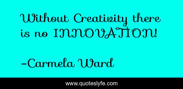 This page presents the quote "Without Creativity there is no INNOVATION!". Author of this quote is Carmela Ward. This quote is about quotes, creativity, innovation,.