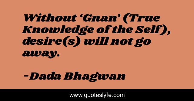 This page presents the quote "Without ‘Gnan’ (True Knowledge of the Self), desire(s) will not go away.". Author of this quote is Dada Bhagwan. This quote is about desire, spiritual, knowledge, soul, knowledge-of-the-self, gnan, atma,.