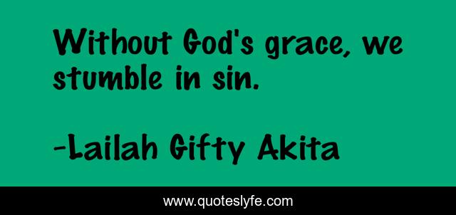 This page presents the quote "Without God's grace, we stumble in sin.". Author of this quote is Lailah Gifty Akita. This quote is about repentance, christian, grace, sin,.