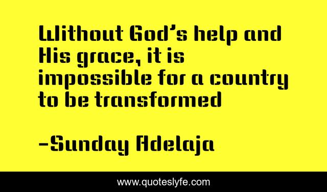 This page presents the quote "Without God’s help and His grace, it is impossible for a country to be transformed". Author of this quote is Sunday Adelaja. This quote is about country, god-s-help, without, transformed, impossible, grace,.
