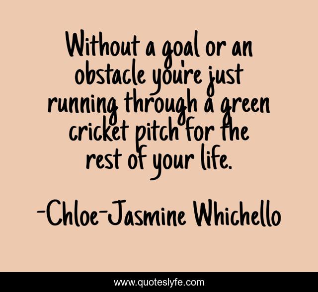 This page presents the quote "Without a goal or an obstacle you're just running through a green cricket pitch for the rest of your life.". Author of this quote is Chloe-Jasmine Whichello. This quote is about goals, goals-in-life,.