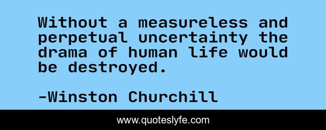 This page presents the quote "Without a measureless and perpetual uncertainty the drama of human life would be destroyed.". Author of this quote is Winston Churchill. .
