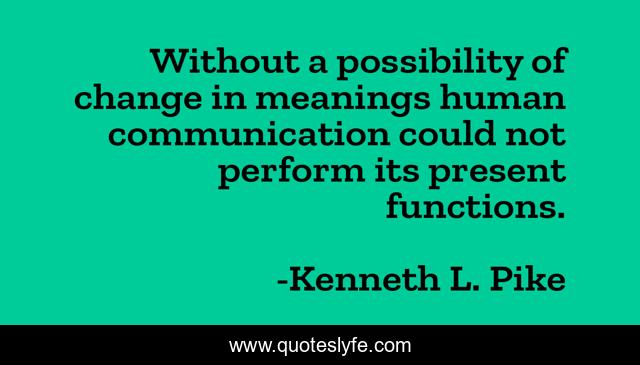 This page presents the quote "Without a possibility of change in meanings human communication could not perform its present functions.". Author of this quote is Kenneth L. Pike. This quote is about change, present, human,.
