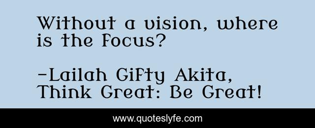 "Lailah Gifty Akita, Think Great: Be Great! Quotes." Quoteslyfe.com, 2025. Fri. 05 Dec. 2025. <https://www.quoteslyfe.com/quote/Without-a-vision-where-is-the-focus-34674>.