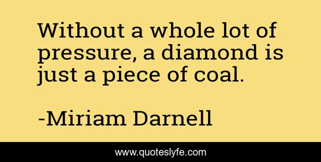 This page presents the quote "Without a whole lot of pressure, a diamond is just a piece of coal.". Author of this quote is Miriam Darnell. This quote is about enthusiasm, philosophical, inspirational,.