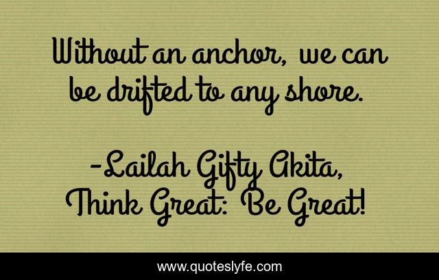 "Lailah Gifty Akita, Think Great: Be Great! Quotes." Quoteslyfe.com, 2025. Mon. 08 Dec. 2025. <https://www.quoteslyfe.com/quote/Without-an-anchor-we-can-be-drifted-85161>.