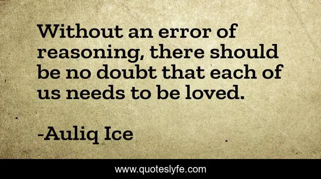 This page presents the quote "Without an error of reasoning, there should be no doubt that each of us needs to be loved.". Author of this quote is Auliq Ice. This quote is about falling-in-love, love, love-and-sayings, affection,.