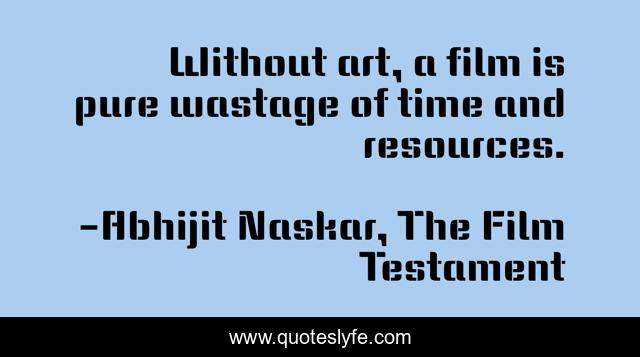 "Abhijit Naskar, The Film Testament Quotes." Quoteslyfe.com, 2025. Sun. 07 Dec. 2025. <https://www.quoteslyfe.com/quote/Without-art-a-film-is-pure-wastage-65990>.