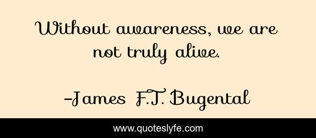"James F.T. Bugental Quotes." Quoteslyfe.com, 2025. Mon. 08 Dec. 2025. <https://www.quoteslyfe.com/quote/Without-awareness-we-are-not-truly-alive-160451>.