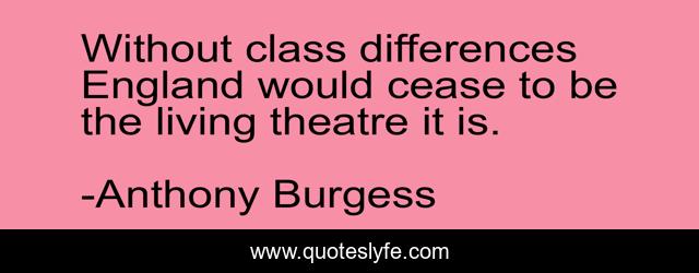 This page presents the quote "Without class differences England would cease to be the living theatre it is.". Author of this quote is Anthony Burgess. This quote is about , england, k, u,.