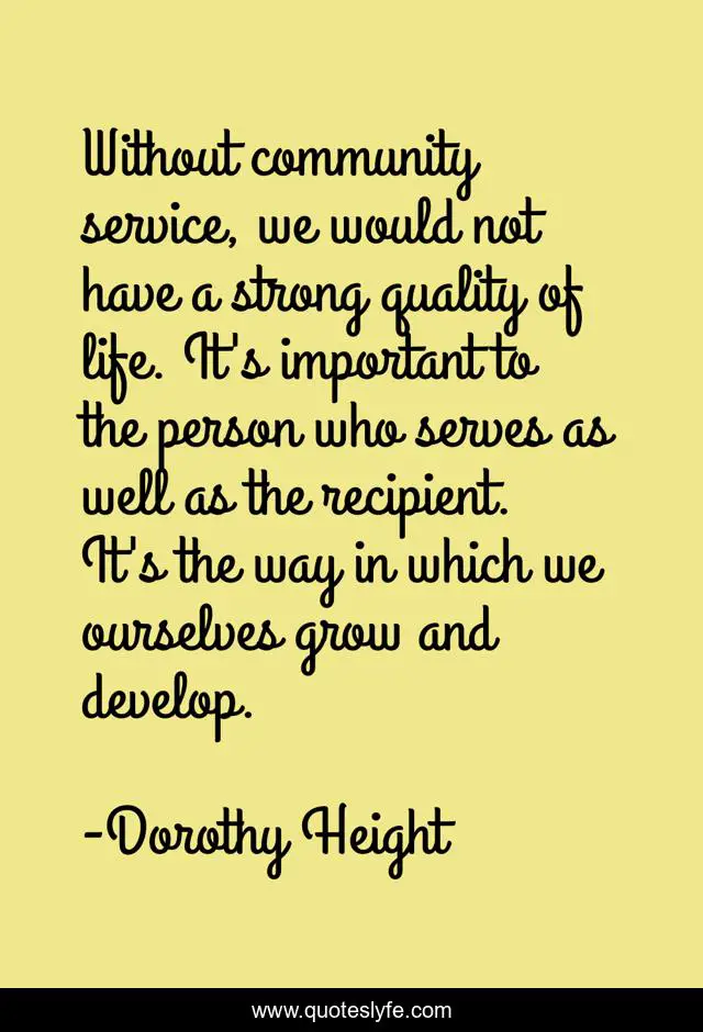 "Dorothy Height Quotes." Quoteslyfe.com, 2025. Sun. 07 Dec. 2025. <https://www.quoteslyfe.com/quote/Without-community-service-we-would-not-have-323896>.