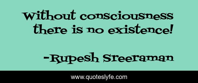 This page presents the quote "Without consciousness there is no existence!". Author of this quote is Rupesh Sreeraman. This quote is about life, life-and-living, life-lessons,.