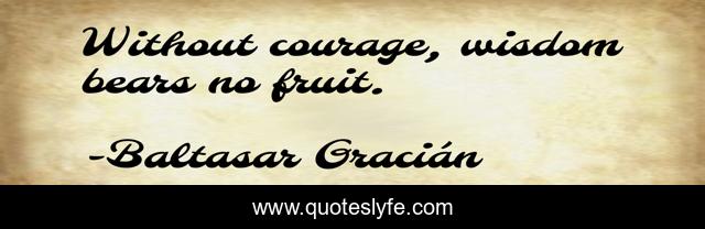 This page presents the quote "Without courage, wisdom bears no fruit.". Author of this quote is Baltasar Gracián. This quote is about courage, wisdom,.