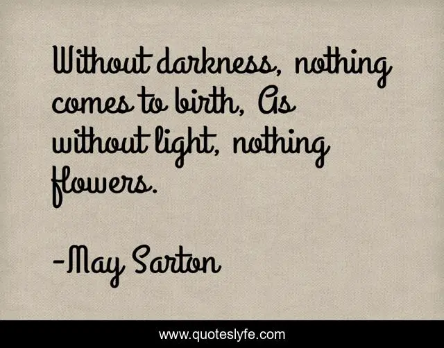 "May Sarton Quotes." Quoteslyfe.com, 2025. Tue. 09 Dec. 2025. <https://www.quoteslyfe.com/quote/Without-darkness-nothing-comes-to-birth-As-198048>.