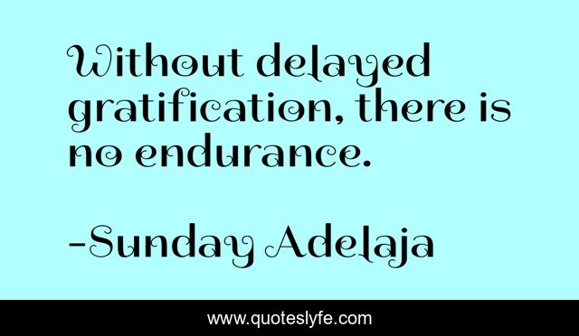 This page presents the quote "Without delayed gratification, there is no endurance.". Author of this quote is Sunday Adelaja. This quote is about endurance, delayed-gratification, gratification,.