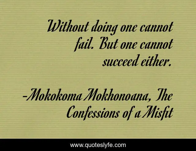 "Mokokoma Mokhonoana, The Confessions of a Misfit Quotes." Quoteslyfe.com, 2025. Fri. 05 Dec. 2025. <https://www.quoteslyfe.com/quote/Without-doing-one-cannot-fail-But-one-145274>.