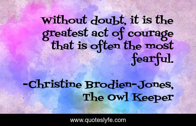 This page presents the quote "Without doubt, it is the greatest act of courage that is often the most fearful.". Author of this quote is Christine Brodien-Jones, The Owl Keeper. This quote is about the-owl-keeper, brave,.