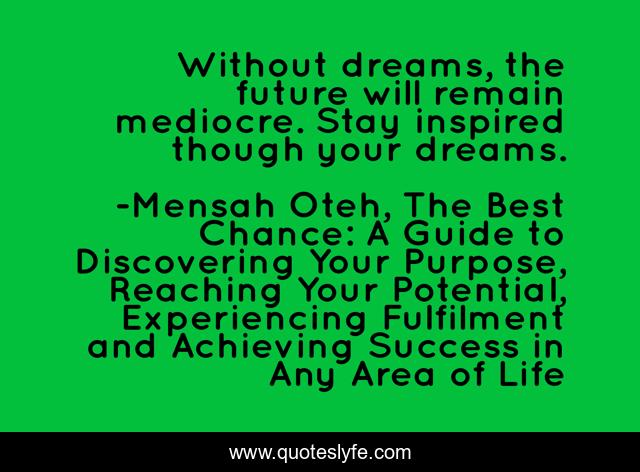 "Mensah Oteh, The Best Chance: A Guide to Discovering Your Purpose, Reaching Your Potential, Experiencing Fulfilment and Achieving Success in Any Area of Life Quotes." Quoteslyfe.com, 2025. Sat. 06 Dec. 2025. <https://www.quoteslyfe.com/quote/Without-dreams-the-future-will-remain-mediocre-49104>.