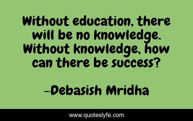 This page presents the quote "Without education, there will be no knowledge. Without knowledge, how can there be success?". Author of this quote is Debasish Mridha. This quote is about without-knowledge, knowledge, success, philosophy, debasish-mridha, what-is-success, quotes, inspirational, enthusiasm,.