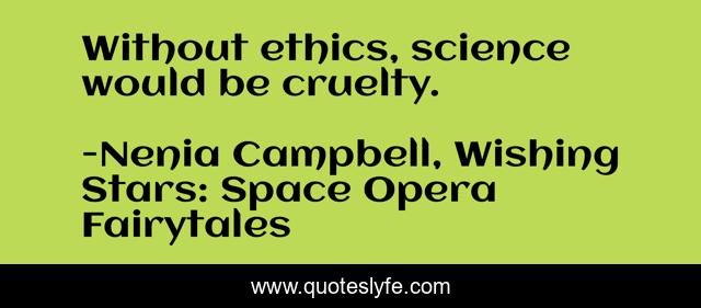 This page presents the quote "Without ethics, science would be cruelty.". Author of this quote is Nenia Campbell, Wishing Stars: Space Opera Fairytales. This quote is about science, ethics, humanity, science-fiction,.