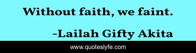 This page presents the quote "Without faith, we faint.". Author of this quote is Lailah Gifty Akita. This quote is about faith, wise-words, positive-outlook, faint, encouragement, self-help, fear, inspiration,.