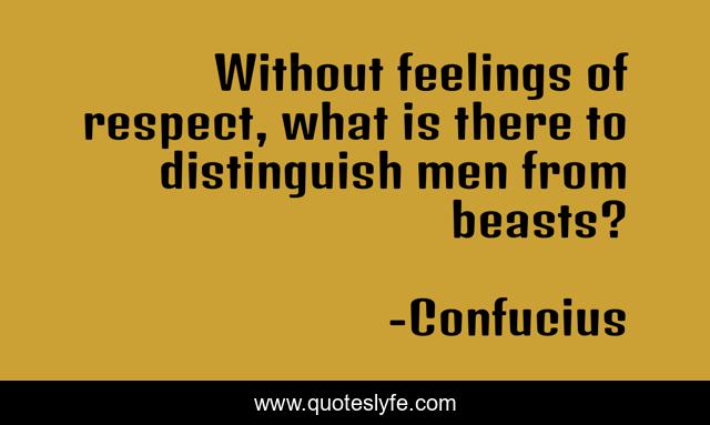 This page presents the quote "Without feelings of respect, what is there to distinguish men from beasts?". Author of this quote is Confucius. This quote is about philosophical, understanding, wisdom,.