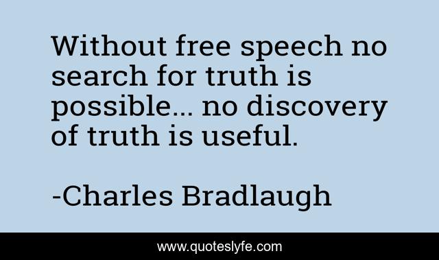 "Charles Bradlaugh Quotes." Quoteslyfe.com, 2025. Fri. 05 Dec. 2025. <https://www.quoteslyfe.com/quote/Without-free-speech-no-search-for-truth-310154>.