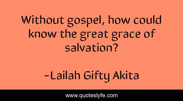 This page presents the quote "Without gospel, how could know the great grace of salvation?". Author of this quote is Lailah Gifty Akita. This quote is about gospel, salvation, grace,.