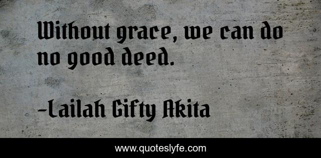 This page presents the quote "Without grace, we can do no good deed.". Author of this quote is Lailah Gifty Akita. This quote is about spiritual, good-deeds, grace,.