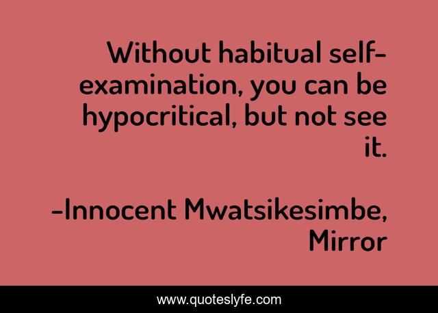 This page presents the quote "Without habitual self-examination, you can be hypocritical, but not see it.". Author of this quote is Innocent Mwatsikesimbe, Mirror. This quote is about life, hypocrisy, self-examination, people,.